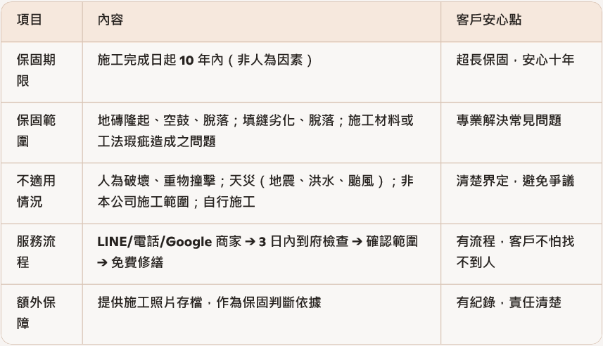 我們不只施工,更承諾十年守護,讓每一位客戶安心。